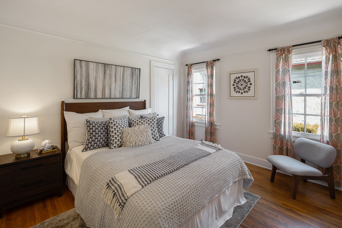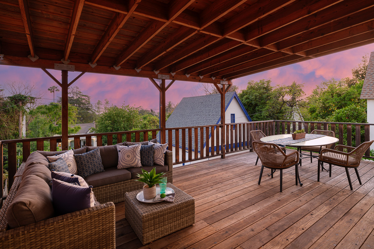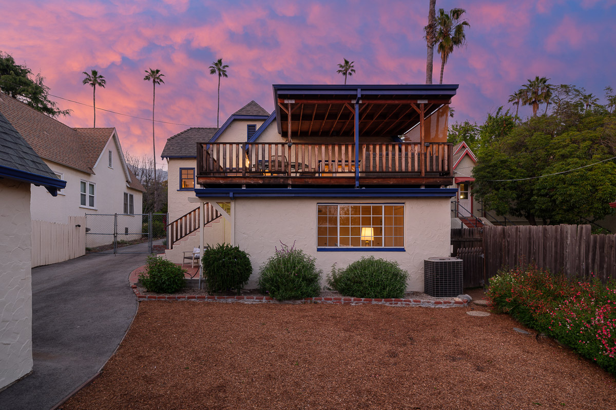 This beautiful three bedroom, two bath 1,267 square foot (measured) Janes Cottage, done by the acclaimed builder E.P. Janes, sits on the sought-after and picturesque Las Flores Drive. You enter the gracious home, via a welcoming front porch with a brick-bordered arch, that leads into the elegant interior. You step into the gorgeous living room that features gleaming hardwood floors, a central decorative, stepped fireplace with artisan tile, topped by an enchanting niche, and a multi-paned, glass window that frames views of our majestic San Gabriel Mountains rising in the distance. In addition, there is an inviting formal dining room, with a charming window seat or banquette, as well as a picture-perfect, remodeled kitchen with stainless steel appliances, including an Italian made vent hood by Arietta, white cabinetry, a glazed Saltillo floor, butcher block counters, a backsplash done with hand crafted tile as well as a quaint breakfast nook. All this leads out to a raised deck that is an entertainer’s dream and overlooks the expansive tiered backyard. Below, in the lower level of the home, is a 277 square foot (measured) bonus space comprised of a sunlit room, framed by windows, as well as the second bathroom. It is an ideal area to use as a family room, guest suite or as a separate office. The possibilities are endless. This level also provides an entrance to the basement which offers ample storage space as well as access to the underside of the structure.